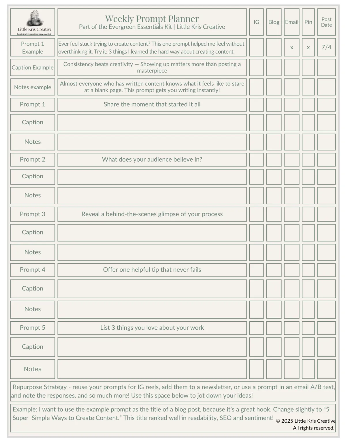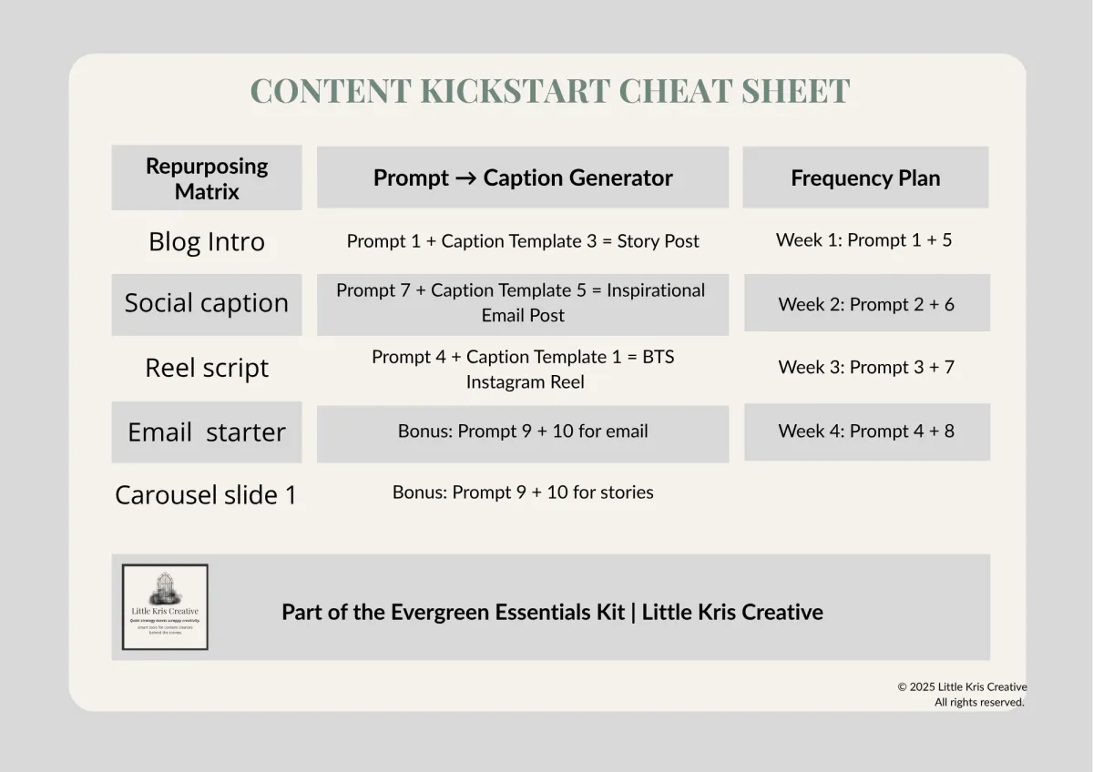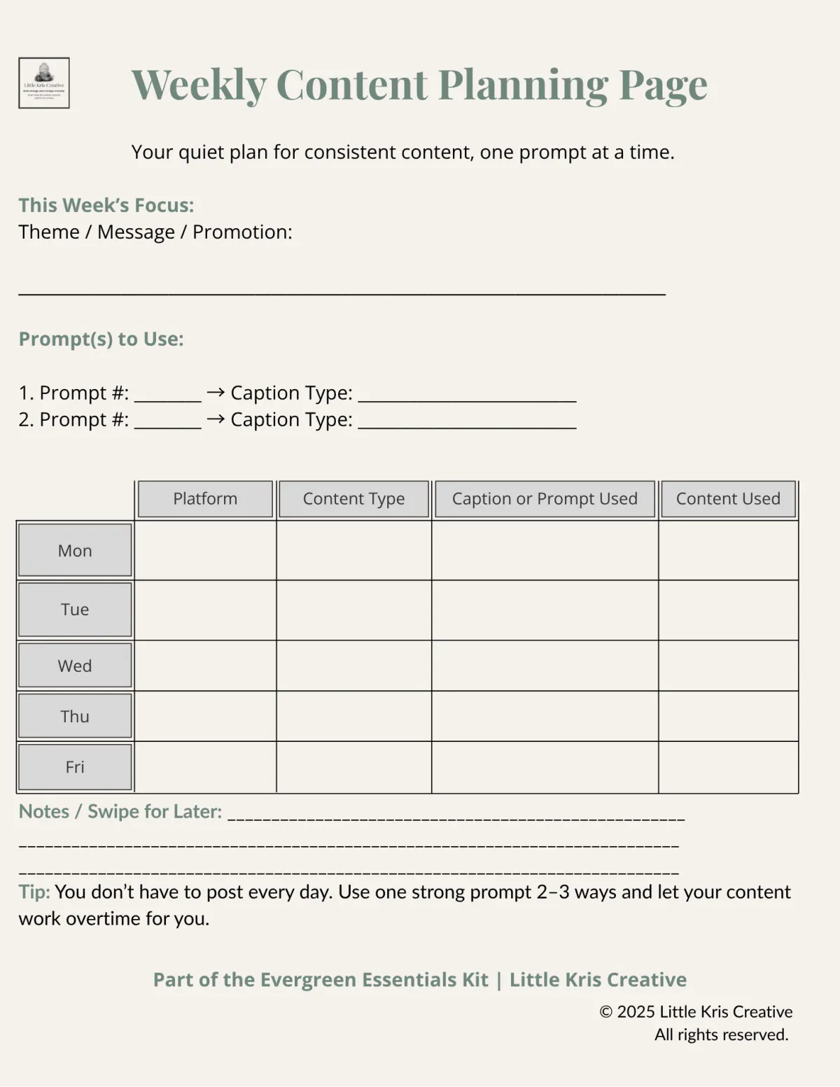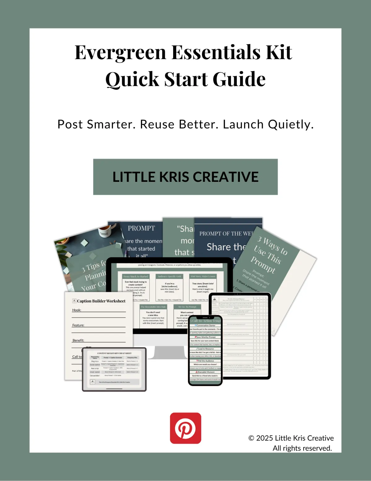 The Evergreen Essentials Kit is the system I wish I had back then, before burnout, before content chaos.